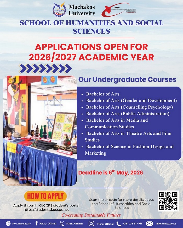 Welcome to the School of Humanities and Social Sciences. We are one of the fastest growing schools at Machakos University. Our school has seventeen (17) highly qualified faculty members. The School takes pride in them for their dedication and diligence in teaching, research and outreach activities. It is gratifying that the faculty has and continues to undertake path-breaking research and publication in different fields in line with the global need for pushing the boundaries of knowledge.